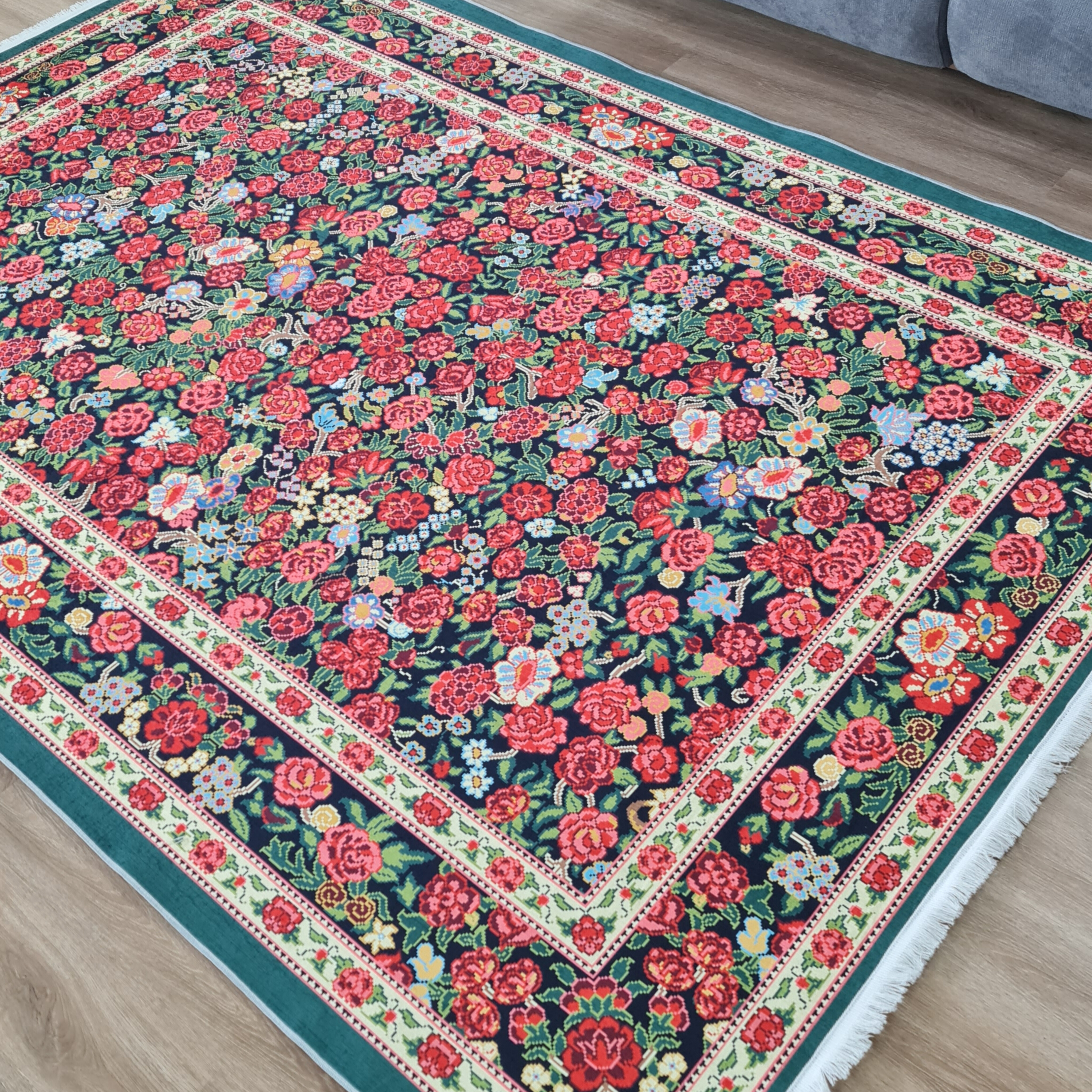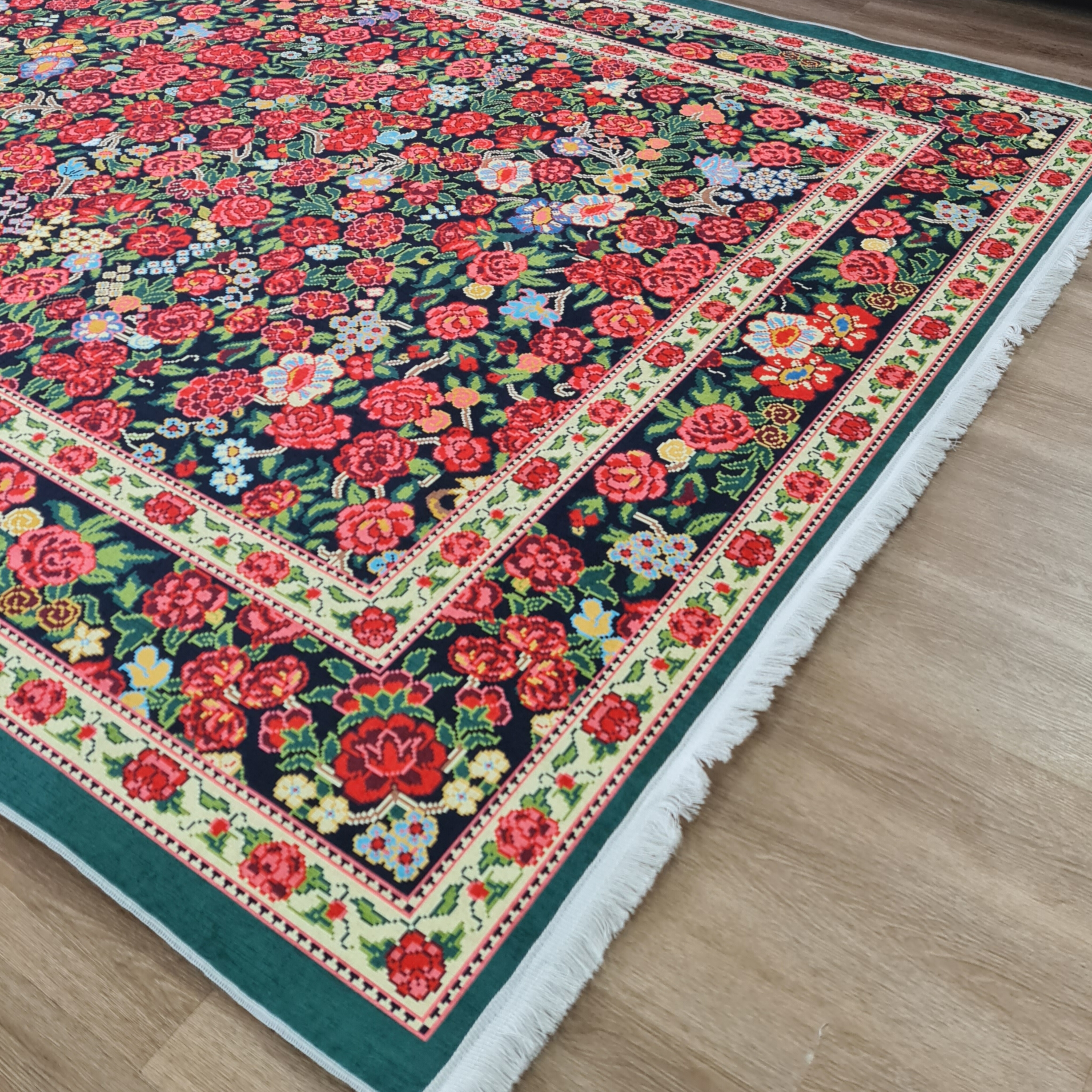 فرشینه گل دار قرمز