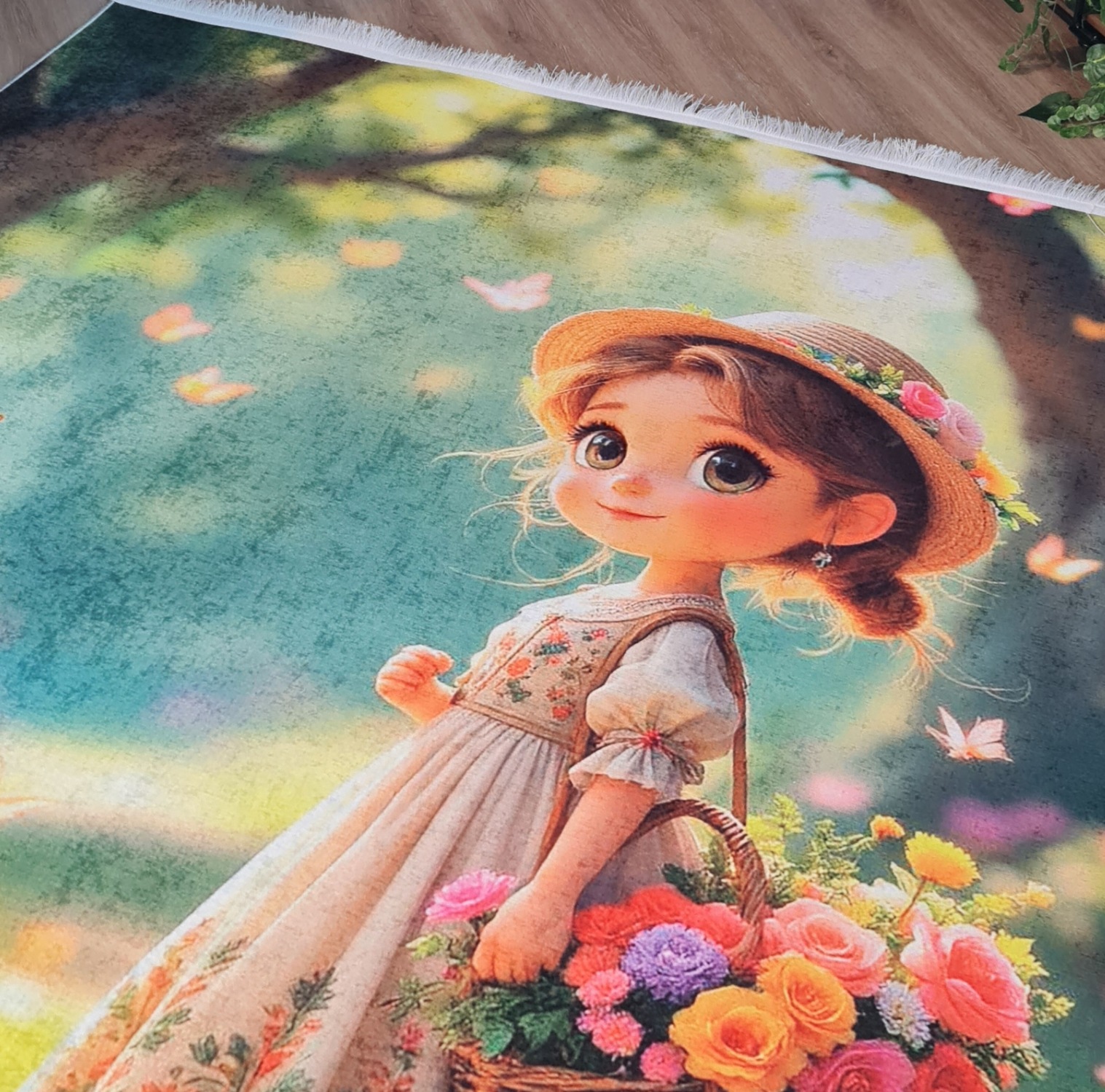 فرش دخترونه مدل کارتونی مربعی یک در یک